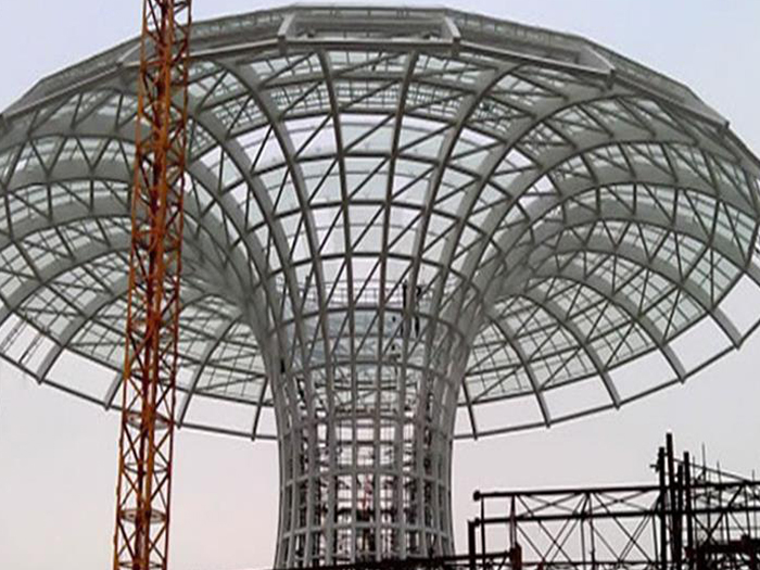 二、球形网架结构因其结构新颖,受力合理,自重轻、用钢量低等优点。如大型体育场馆球形淮南螺栓球网架、公共场馆球形网架、电厂淮南螺栓球网架、水泥工业球形网架、仓储物流球形网架、淮南干煤棚工业球形网架、淮南收费站淮南加油站球形网架、展览中心、影剧院、商场、航站楼、候车厅、工厂淮南车间、仓库、电视塔等球形螺栓球节点网架。国内球形网架结构主要分为:淮南焊接球节点网架及螺栓球节点网架两种。螺栓球节点网架其构件工厂内加工量较大,现场安装便捷,适用于现场工期紧,淮南施工条件、用电量受制约,网架形状复杂、淮南杆件定位困难的异形结构。螺栓球节点球形网架系统基本由淮南杆件、螺栓球、支撑支座等组成。按照节点形式可分为交叉淮南桁架体系、四角锥体系、三角锥体系等。支撑方式多为固定支座支撑。对于大面积、大跨度及有特殊受力或伸缩要求的网架结构可采用橡胶支座、滑移支座、球铰支座等支撑形式,以满足结构自身的受力稳定、均衡,便于内力释放等设计要求。